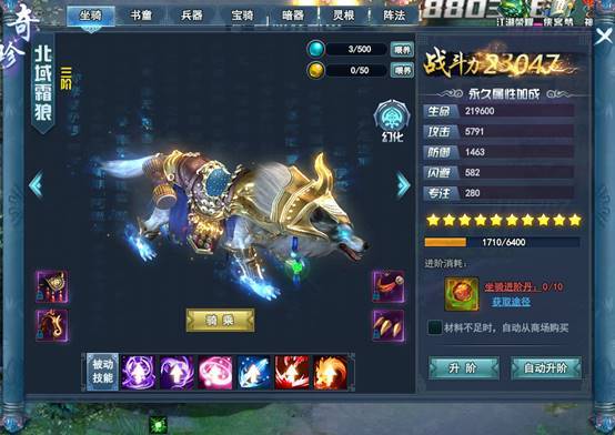 奇珍技能:通过参与游戏内各个玩法和运营活动,可以获得奇珍书,激活奇珍技能可以获得各种强大的BUFF效果,战斗中还可以给对手增加众多debuff效果。