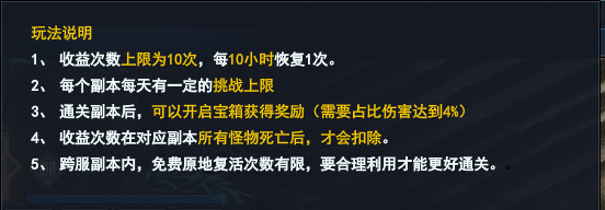 4. 收益次数在对应副本所有怪物都死亡后,才会扣除,可以放心挑战。